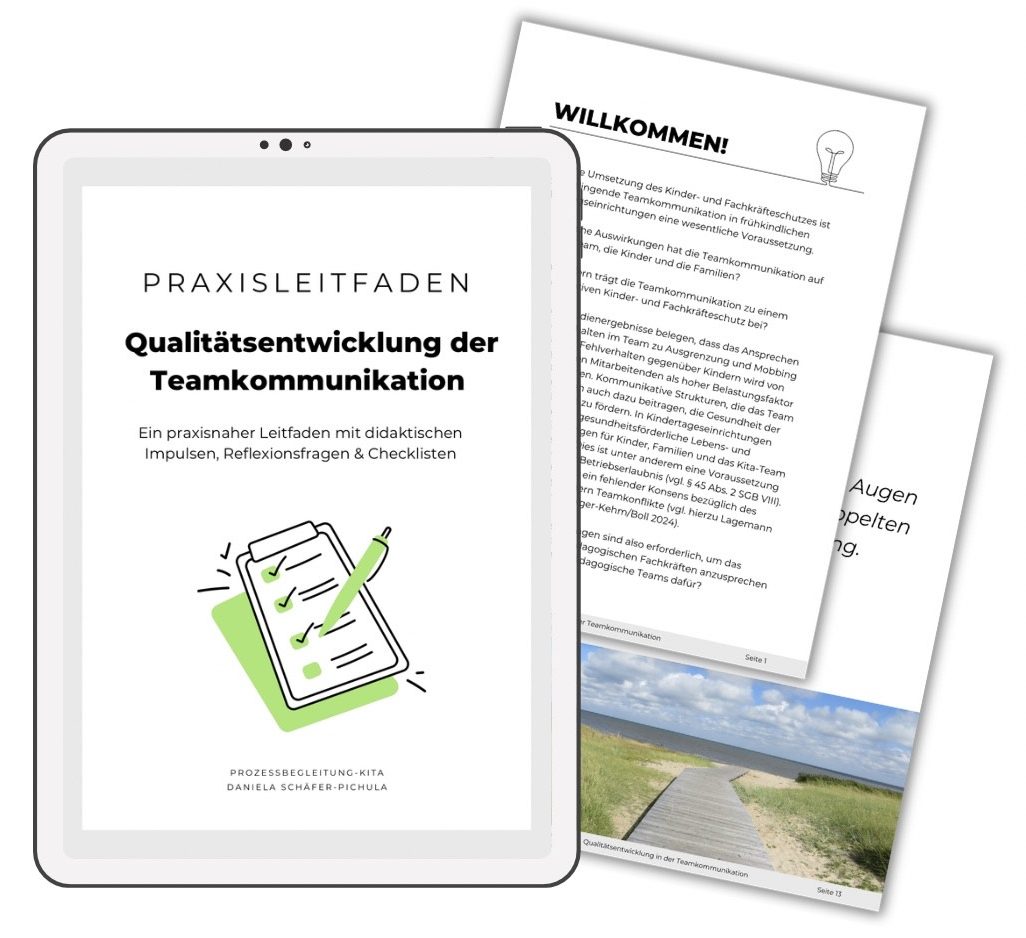 Der Praxisleitfaden vereint kommunikations- und organisationspsychologische Elemente aus der lösungsorientierten und systemischen Beratung mit Prinzipien des agilen Arbeitens. Die Inhalte laden dazu ein sich mit der Teamkommunikation auseinanderzusetzen. Die Methoden können Lernprozesse unterstützen und die Sinneskanäle auf vielfältige Weise ansprechen. Da jedes Team individuelle Maßnahmen benötigt, die sich an den jeweiligen Ressourcen und Bedarfen der Kinder, Familien und Einrichtungen orientieren, sind die Inhalte dieses Praxisleitfadens als reflexive Anregungen zu verstehen.